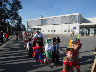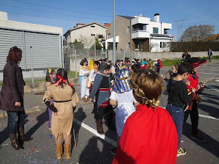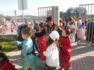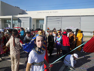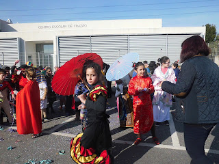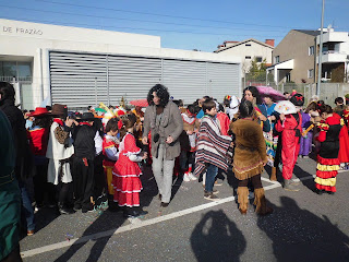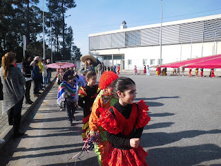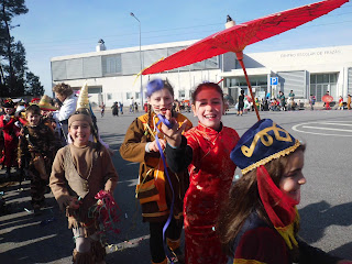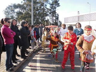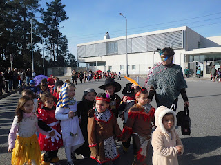 No dia 5 de fevereiro festejou-se o carnaval na nossa escola. Realizamos o tradicional desfile e depois crianças e adultos dançaram e divertiram-se ao som da música colocada para o efeito.
